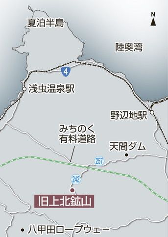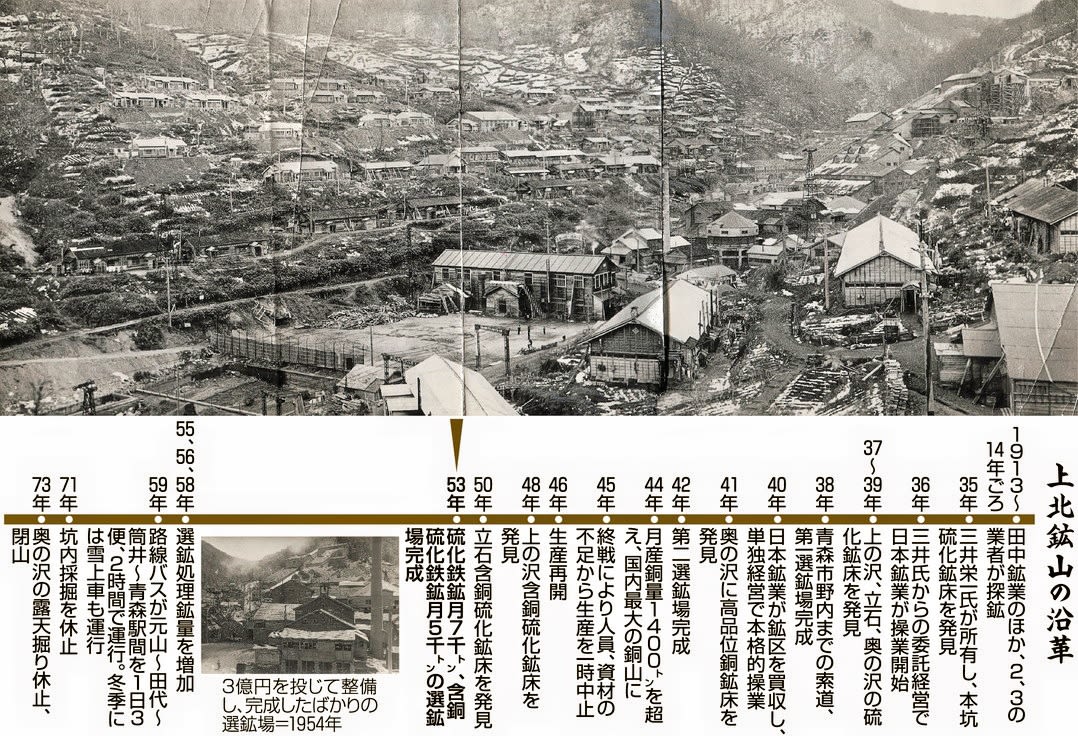 かつて上北鉱山で生活した佐藤宏司さん(90)=千葉県船橋市=は本紙の電話取材に「戦時中に多く取れた銅の産出量が戦後になって減り、代わりに、肥料に使われる硫化鉄鉱が増産されるようになった。硫化鉄鉱は量で稼ぐ必要があり、採掘量が増え、選鉱場も拡大していった」と話した。