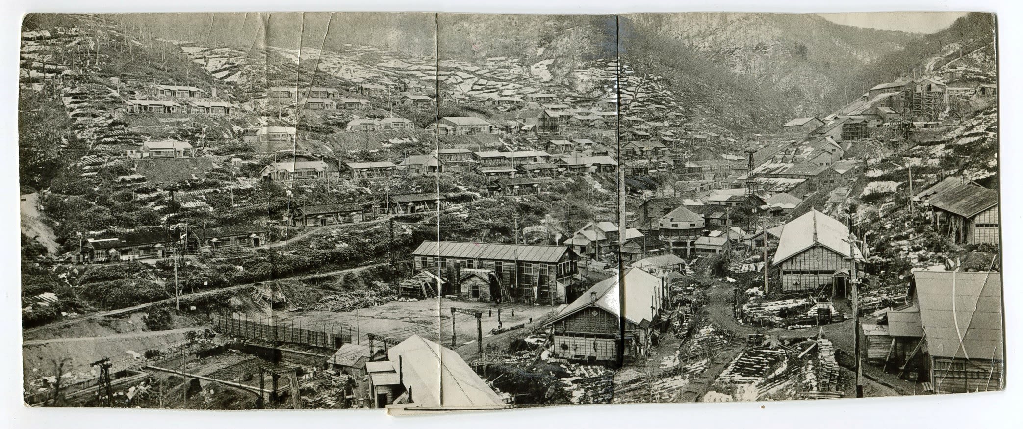 「ひな壇型に真新しい宿舎が美しく並んでいる。宿舎は狭いが、衛生完備した二間(部屋)を一家族に供与。5人以上の家族の場合は三間を与えている」