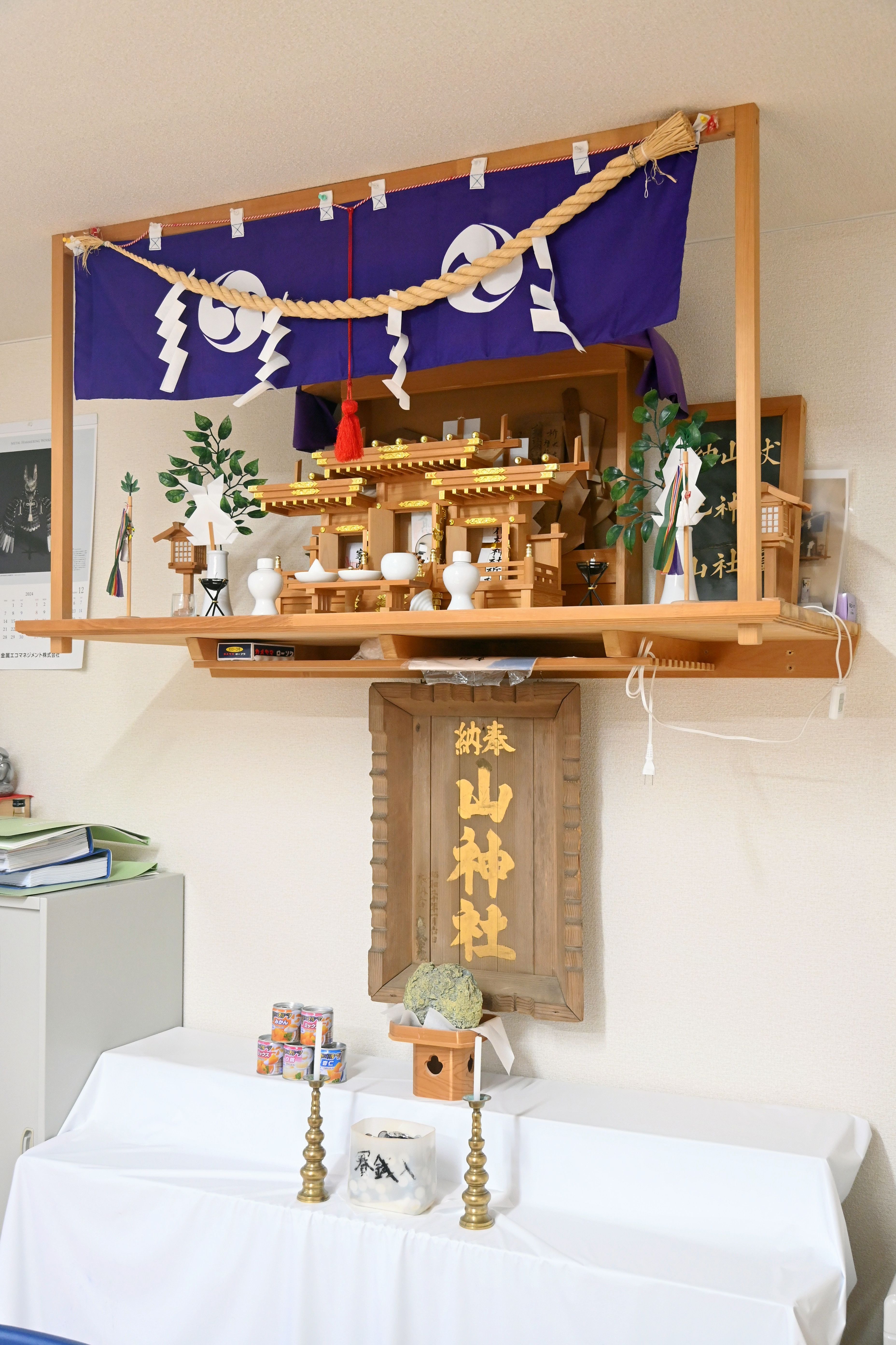 両事業所が入る建物には、採掘員たちが無事を祈った山神社がある。神社は上の沢にあったが、20年ほど前に移設した。