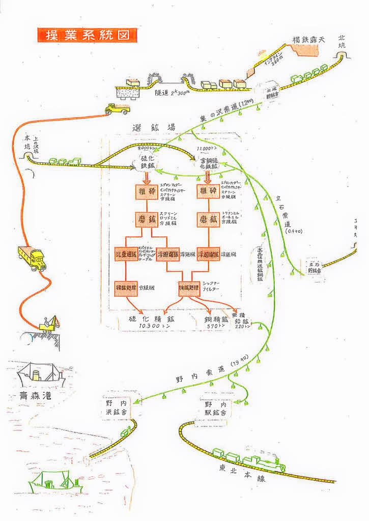 上北鉱山案内図(日本鉱業株式会社 上北鉱業所の事業所案内より)
