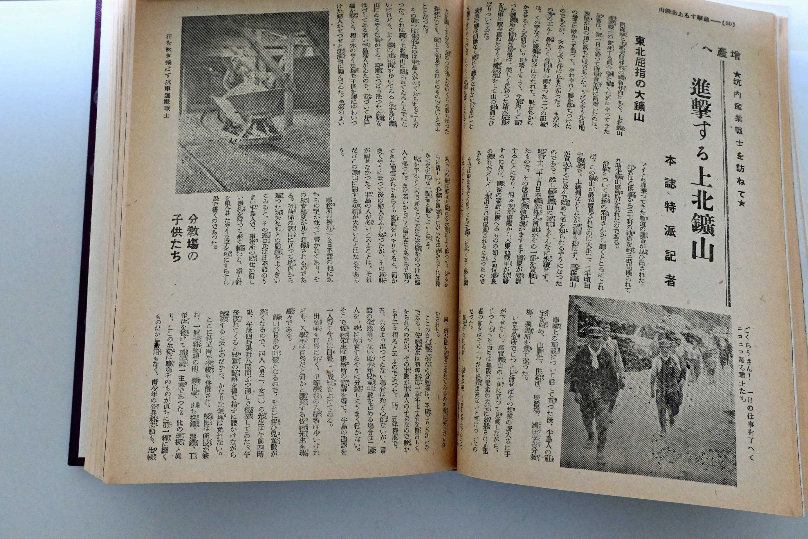 戦時中の上北鉱山はどんな姿だったのか。当時の資料は少ないが、1943年8月の月刊東奥(東奥日報社発行)に「増産へ進撃する上北鉱山」のテーマで記者ルポが書かれている(一部を読みやすく編集)。