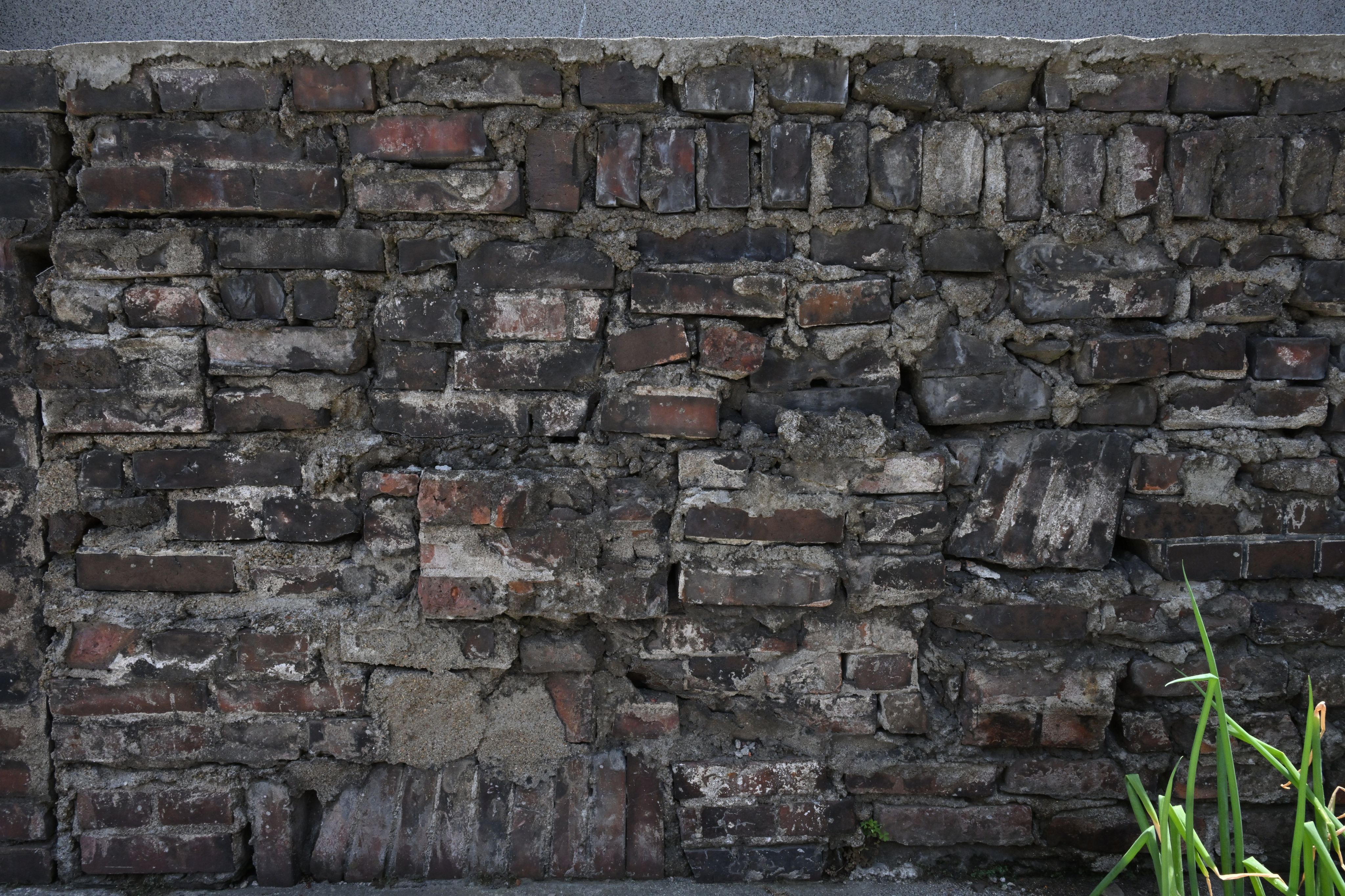 1897年、植物学者でもあるフランス生まれのフォーリー神父(1846~1915年)が建立したカトリック本町教会(当時は青森教会)。建物は空襲で焼失したものの、れんがの塀は焼け残った。経年劣化とは異なる焦げた黒い部分が空襲の爪痕として確認できる。