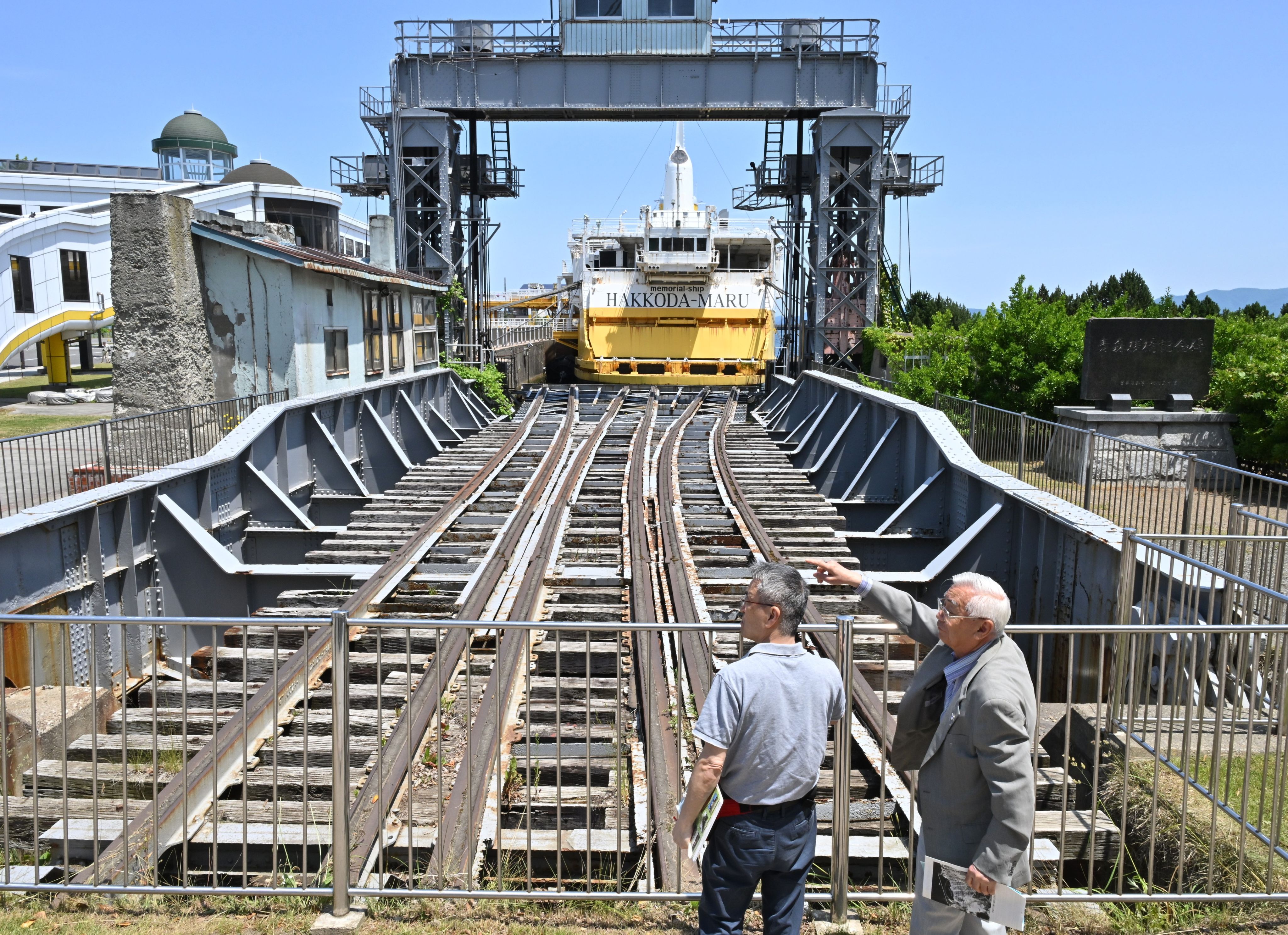 青森駅や青函連絡船メモリアルシップ「八甲田丸」近くにある青函連絡船の可動橋は1925年に落成、54年に改造された。貨車を連絡船に積み込む際に陸上のレールから船内のレールへと橋渡ししていた。
