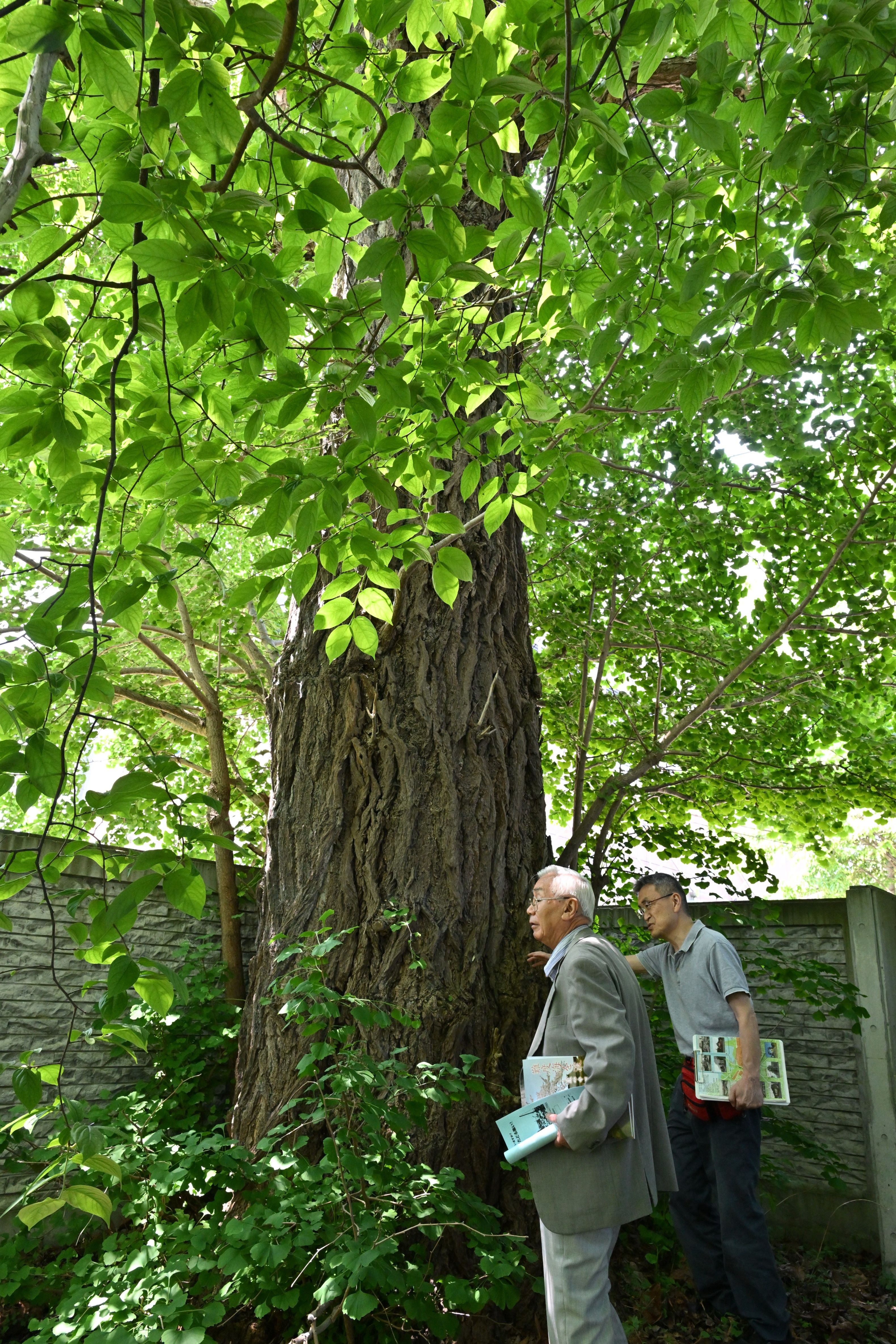 近年は高圧電線に当たらないよう大イチョウの木を切り、形は良くないが、「元気に生きている」(本間さん)という。