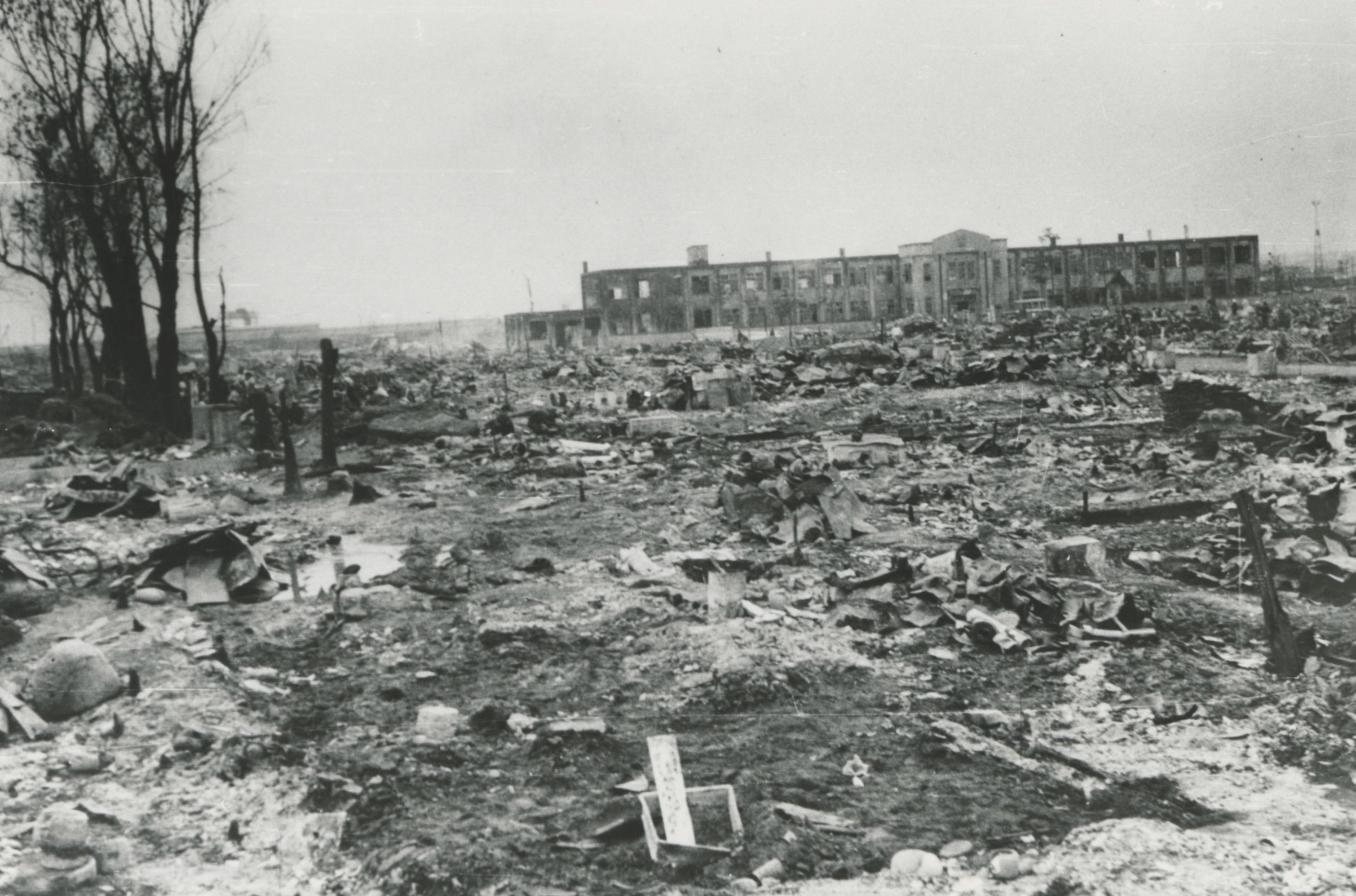 1週間ほどして、街に出たら、建物がほとんど焼け落ちていた。かつて見たにぎやかな街並みが無残な姿になり「悲しかった」。