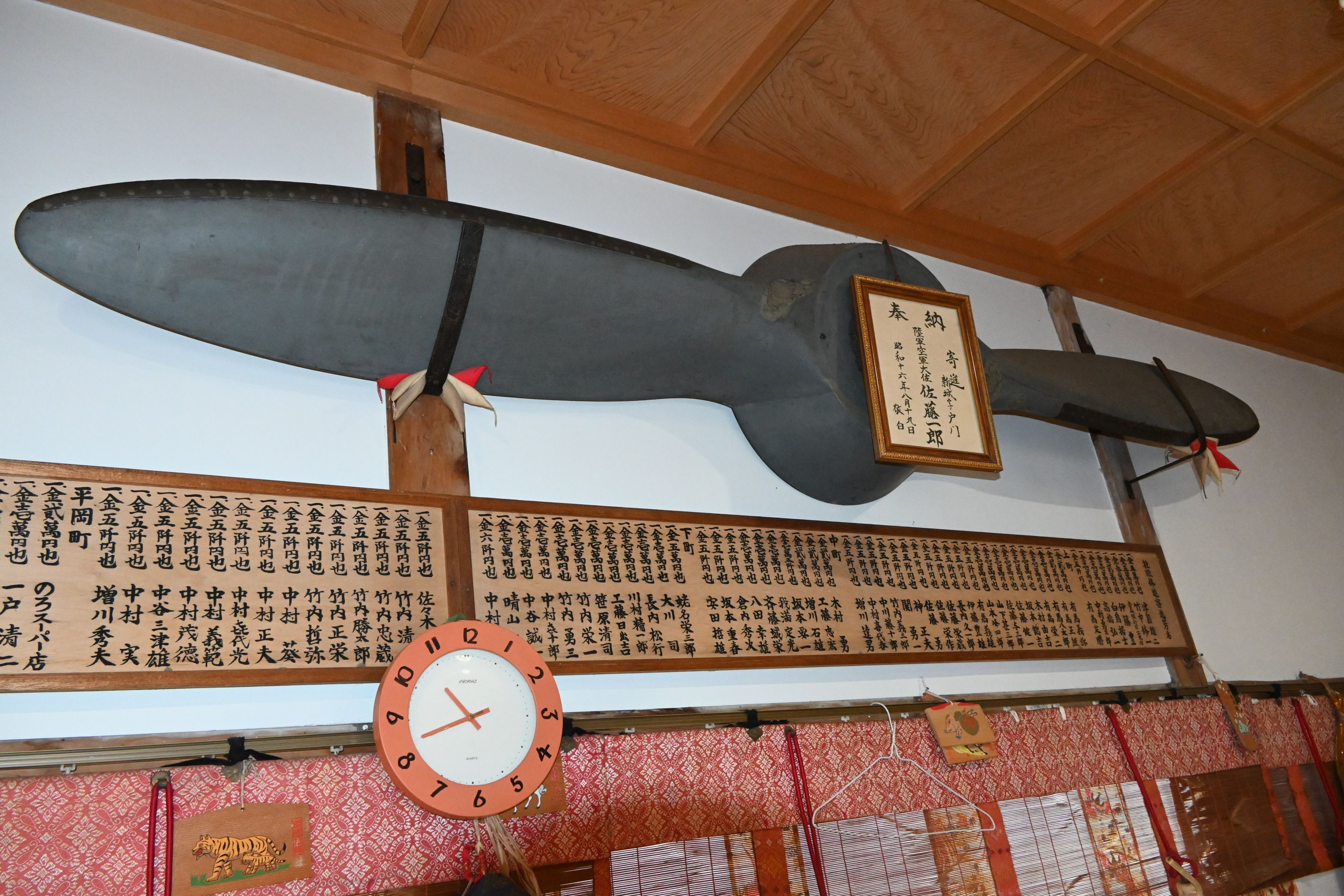 新城の金峰神社には、1941年に地元出身の陸軍大佐の佐藤一郎氏が奉納した戦闘機の木製プロペラが飾られている。