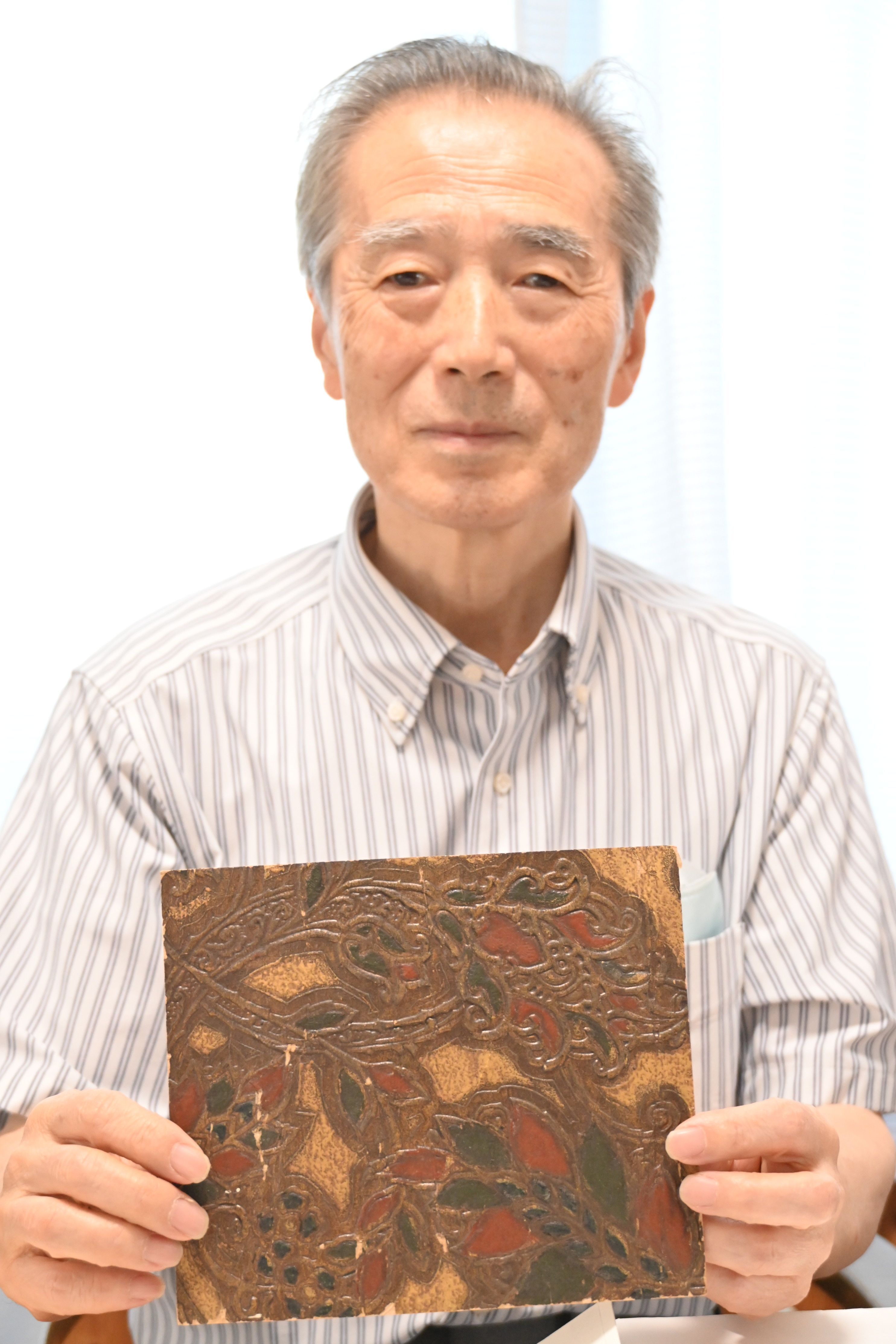 弘前市中野の野呂良明さん(81)は第8師団司令部の師団長室にあった壁紙の一部を所有している。