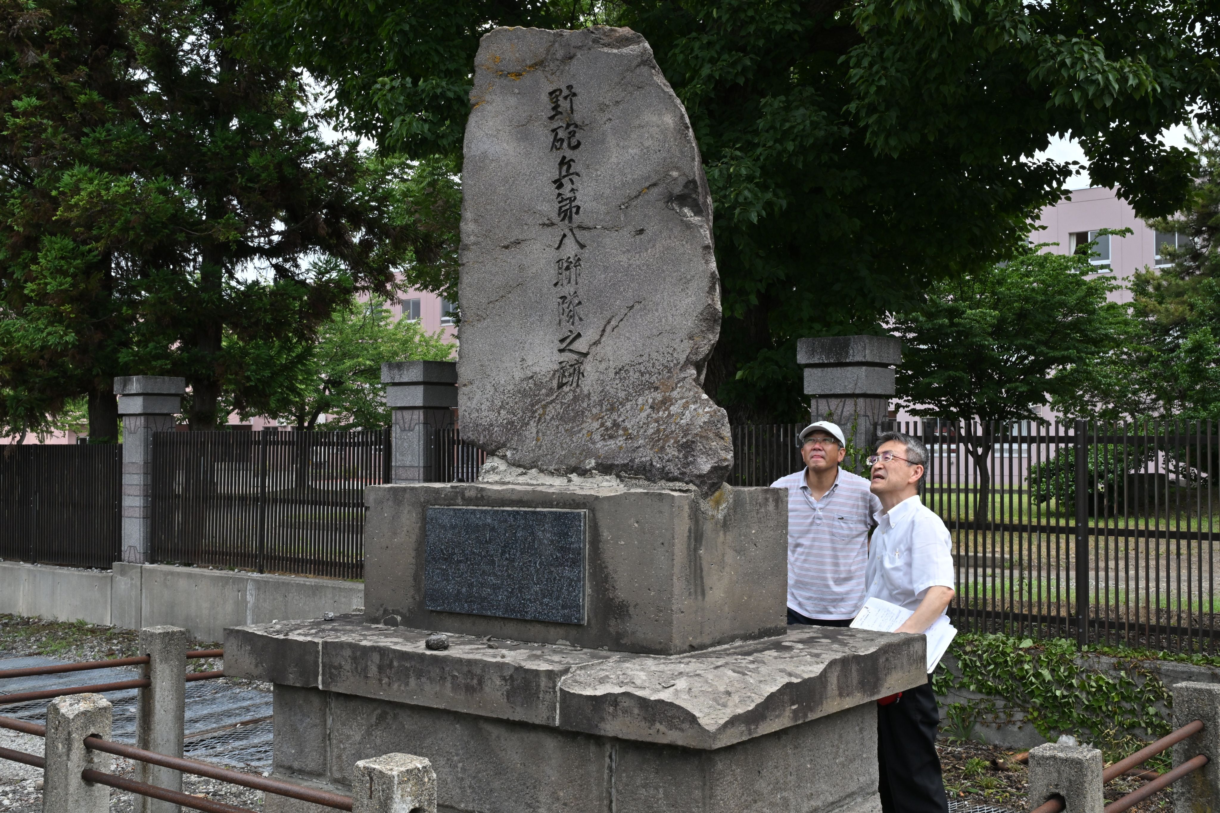 廃藩置県に伴って衰退していたかつての城下町・弘前市に1898年、陸軍第8師団司令部が創設され、同市は「軍都」として発展を遂げた。空襲を免れ、戦後も軍関係の建物が残ったが、年月を経て、老朽化や開発などにより、多くは取り壊された。弘前大学を中心とした高等教育機関が集積し、現在は「学都」と呼ばれる同市。7月上旬、市教育委員会の元教育部長で、役職定年後の現在は市公園緑地課に勤める成田正彦さん(61)の案内で、元県史編さん調査研究員の小泉敦さん(65)=五戸町=と共に、市内に残る遺構を訪ねた。