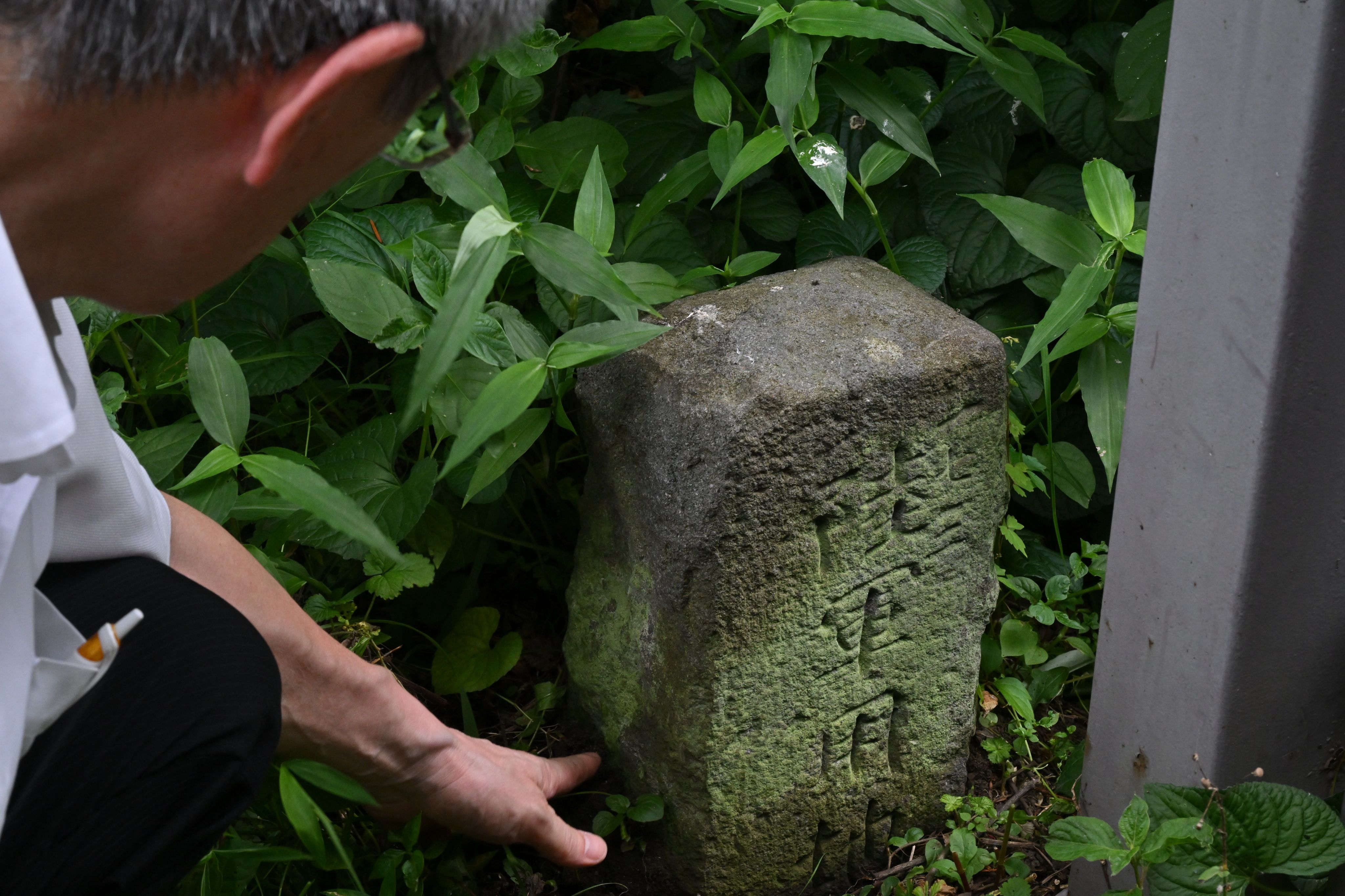 旧陸軍墓地付近にある「陸軍用地」と書かれた境界石