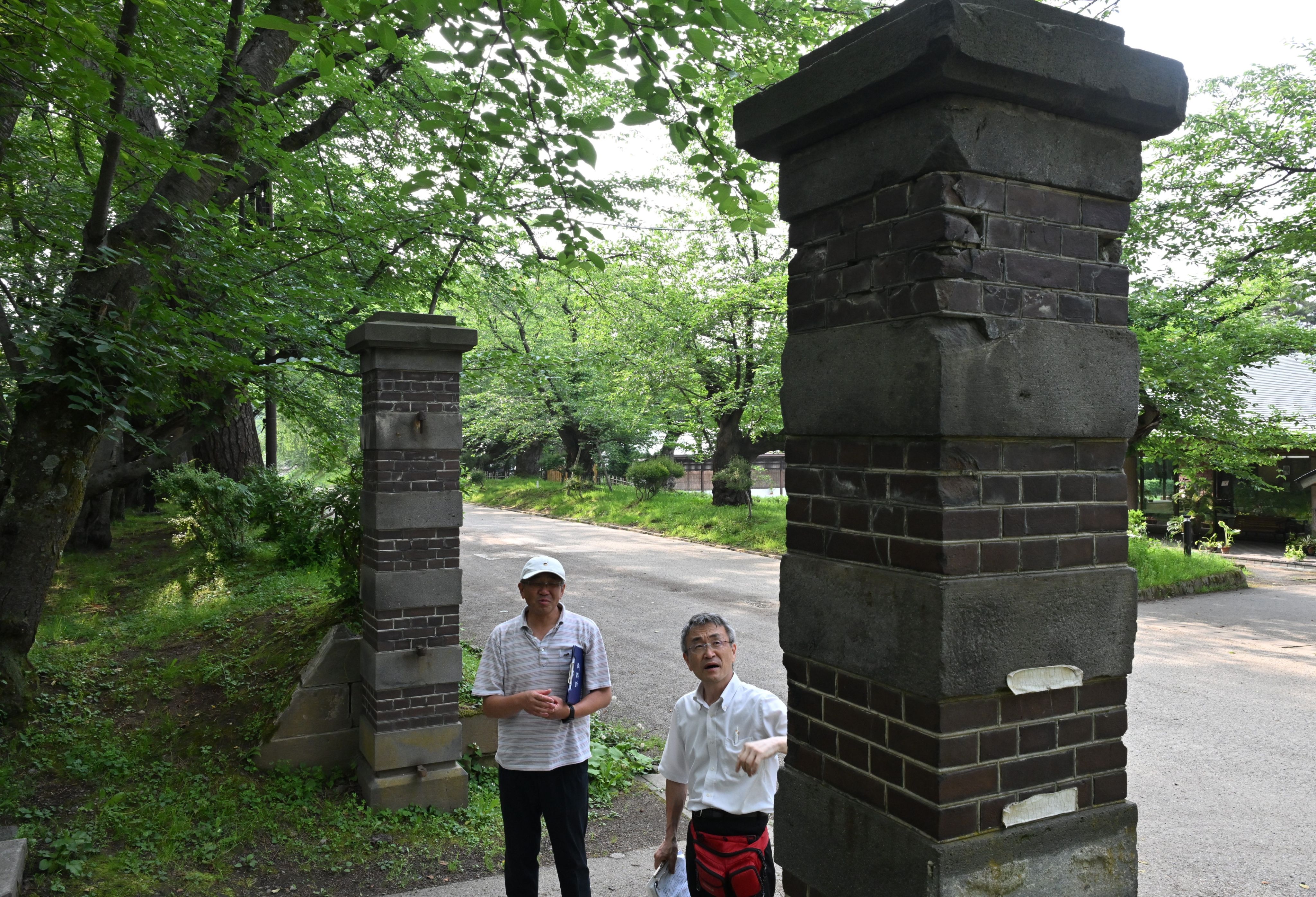 表の門は現在の弘前城植物園の入り口にあったが、現在はない。戦後、弘前大学教育学部が昭和40年代まで兵器支廠跡の建物を使用。れんがの建物もあったという。成田さんは裏門について「れんがと石を使った門で、当時の高さを保っている」と話した。