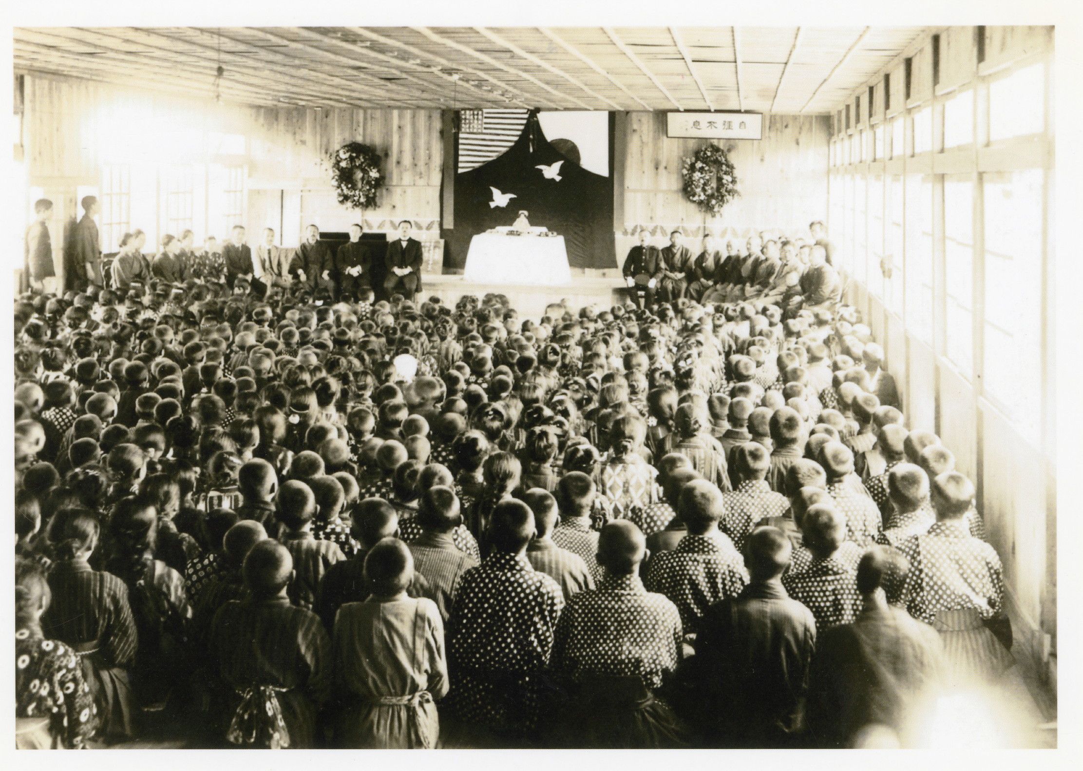 1927年に下郷尋常高等小で行われた友情人形の歓迎会(小泉敦さん提供)