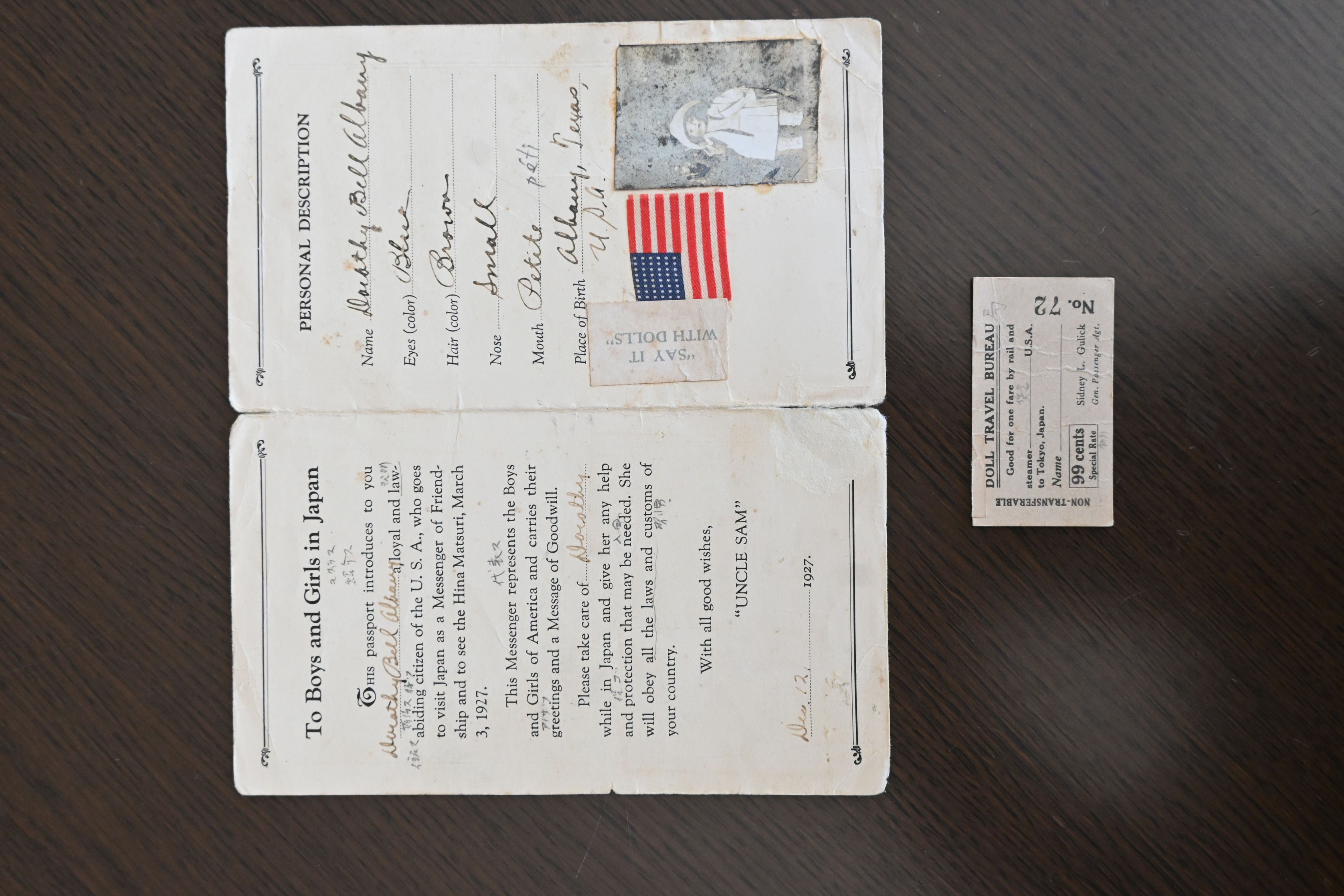 ドロシーが米国から持参してきた切符とパスポート